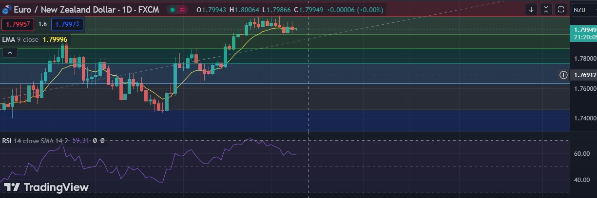 • Immediate resistance is located at 1.8003(9EMA), any close above will push the pair towards 1.8046 (Daily high).