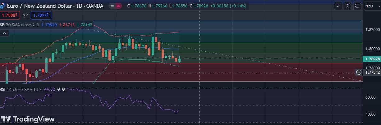 • Strong support is seen at 1.7849(23.6%fib) and break below could take the pair towards 1.7814(Lower BB).