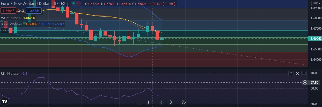 • Technical signals show the pair could lose more ground as RSI is at 41 bearish, and 9, 11,21 DMA’s are trending south.