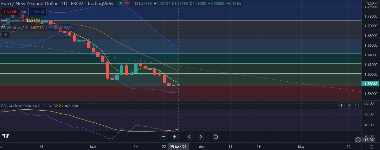 • EUR/NZD held near recent lows on Thursday as ECB and Fed interest rate differentials and reduced optimism on a Ukraine conflict kept earish pressure on the pair