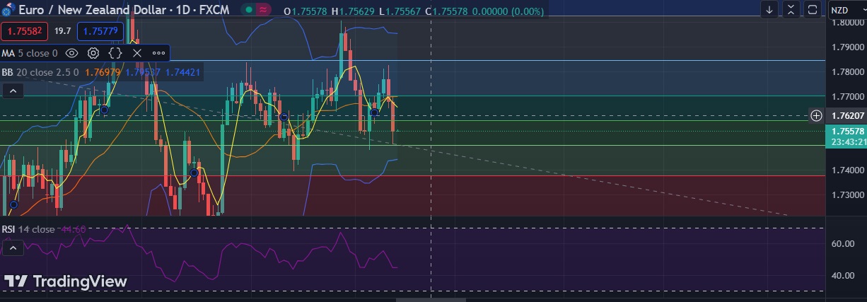 • Immediate support is seen at 1.7500 (38.2%fib) and break below could take the pair towards 1.7446 (Lower BB).