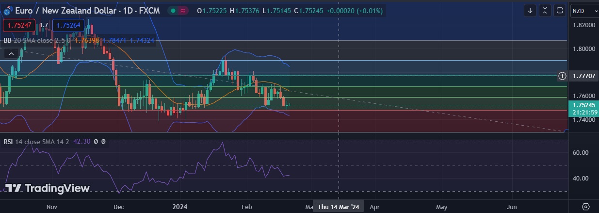 • EUR/NZD has seen a 1.7481-1.7553 range on Tuesday, chart points to an drop towards 1.7450.