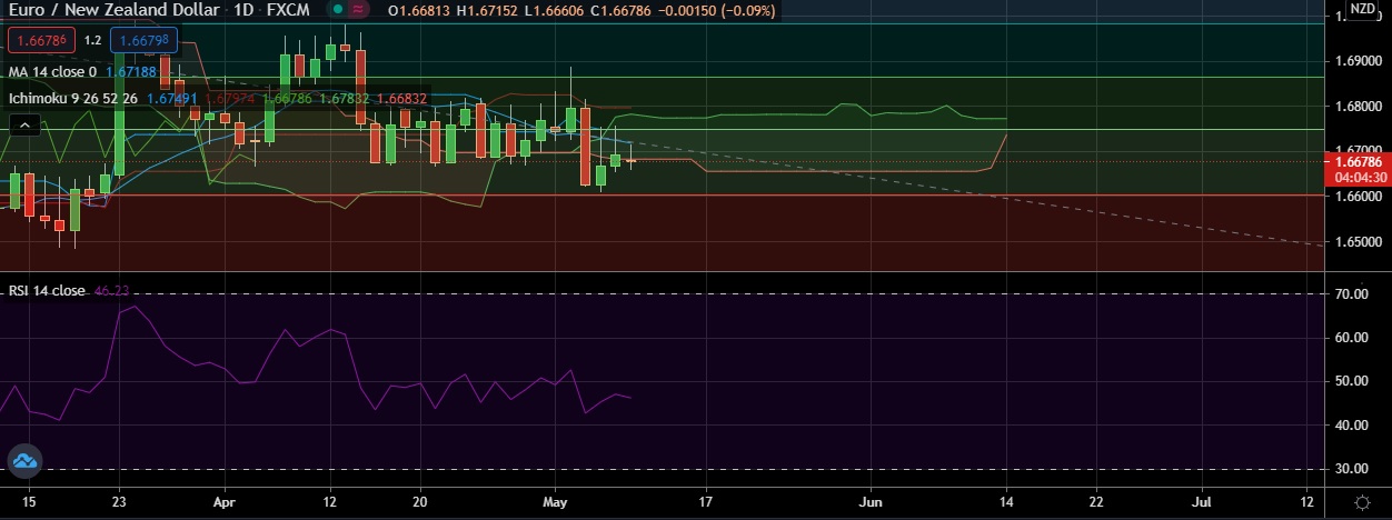 • EUR/NZD dipped on Monday as strong commodity prices aided risk appetite.