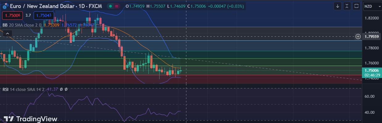 • Immediate support is seen at 1.7436 (23.6%fib) and break below could take the pair towards 1.7380 (Lower BB).