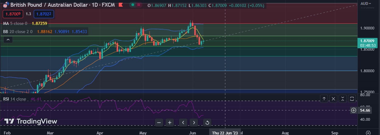 • Immediate resistance is located at 1.8724 (5DMA), any close above will push the pair towards 1.8824 (38.2%fib).