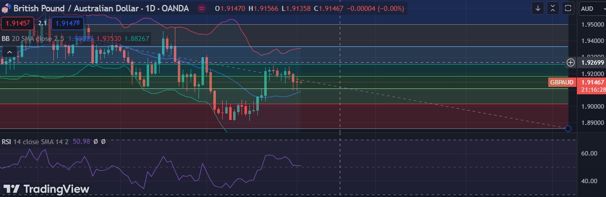 • Strong support is seen at 1.9110 (38.2%fib) and break below could take the pair towards 1.9010 (23.6%fib).