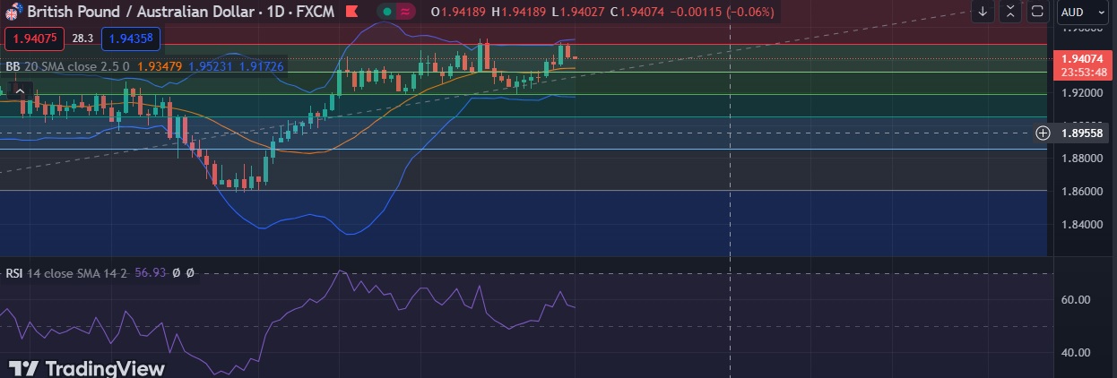 • Immediate resistance is located at 1.9490(23.6%fib), any close above will push the pair towards 1.9526 (Higher BB).