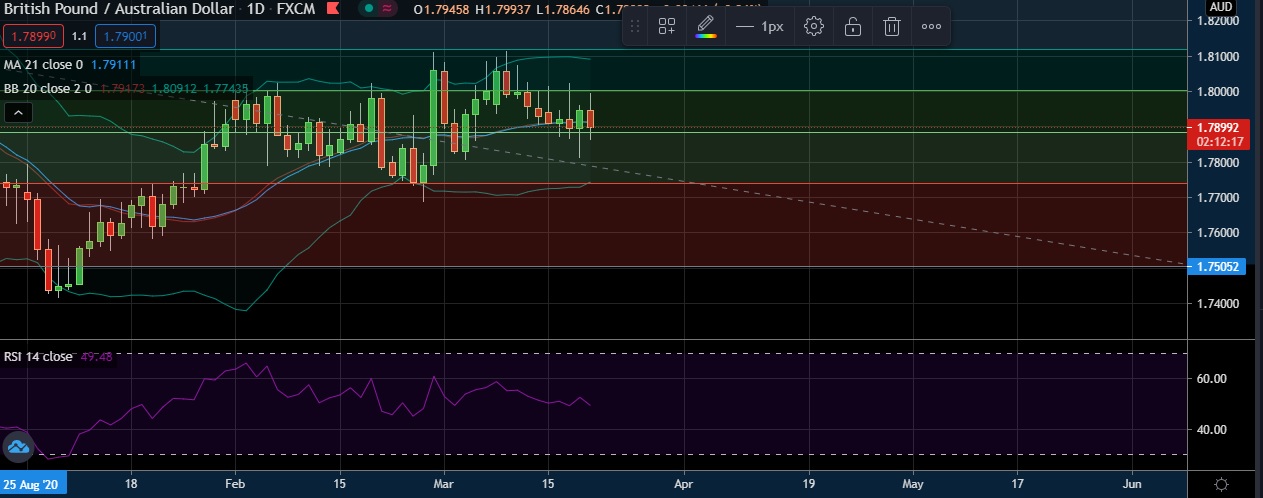 • Strong support is seen at 1.7883 (38.2% fib ) and break below could take the pair towards 1.7810 (18th March low).