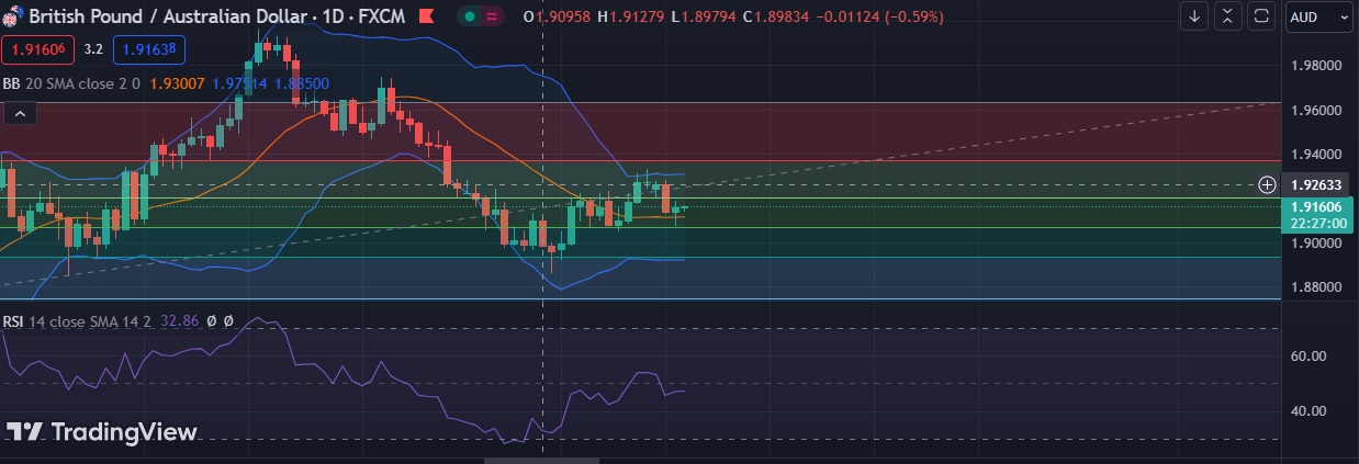 • Strong support is seen at 1.9067 (50% fib) and break below could take the pair towards 1.9000 (Psychological level).