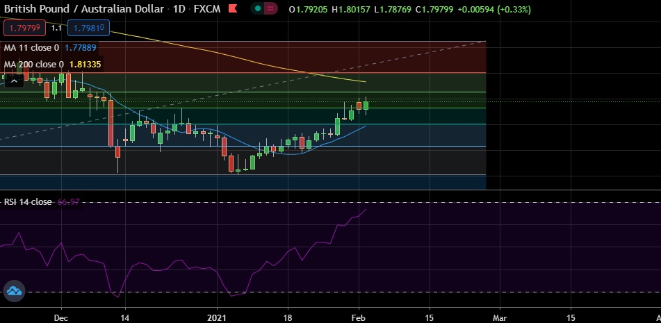 • GBP/ AUD gained on Tuesday as speedy rollout of COVID-19 vaccines by UK lifted the pair.