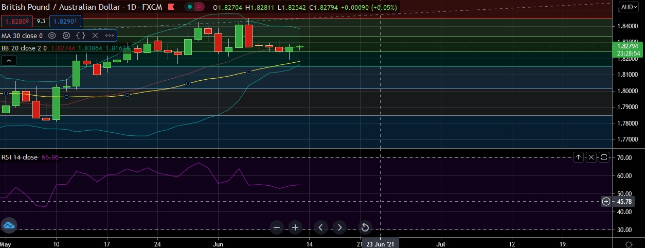 • Immediate support is seen at 1.8240 (38.2% fib) and break below could take the pair towards 1.8182(30DMA).