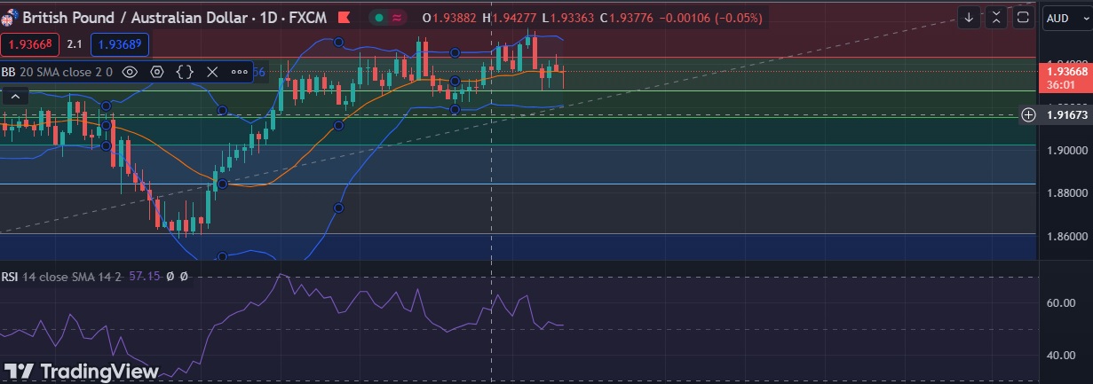 • Immediate resistance is located at 1.9435(23.6%fib), any close above will push the pair towards 1.9499 (Higher BB).