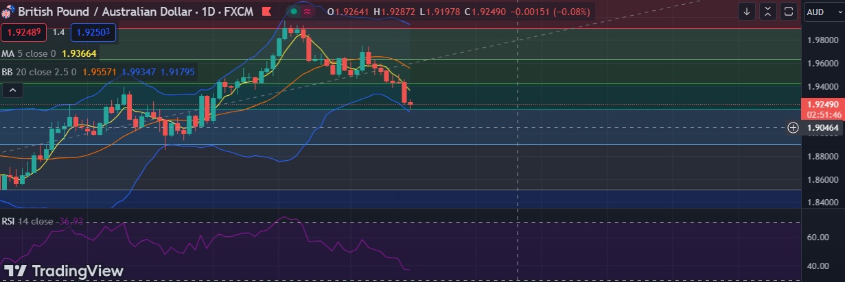 • Strong support is seen at 1.9208 (61.8% fib) and break below could take the pair towards 1.9182 (Lower BB).