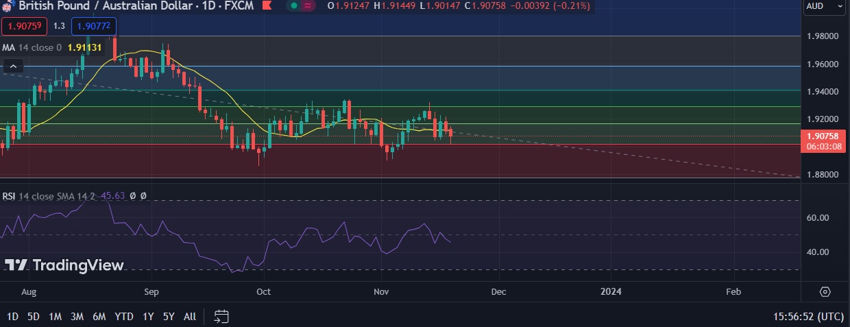 • Strong support is seen at 1.9023 (23.6% fib)and break below could take the pair towards 1.8925 (Nov 3rd low).