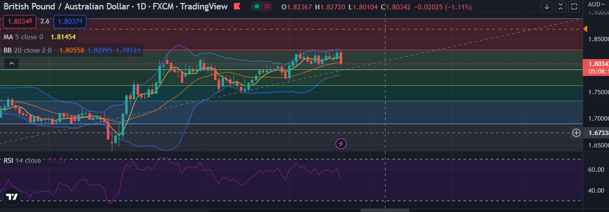 • Immediate resistance is located at 1.8145 (5DMA), any close above will push the pair towards 1.8268 (23.6%fib).