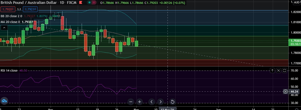 • Immediate resistance is located at 1.7936 (20DMA), any close above will push the pair towards 1.7964 (50%fib resistance).
