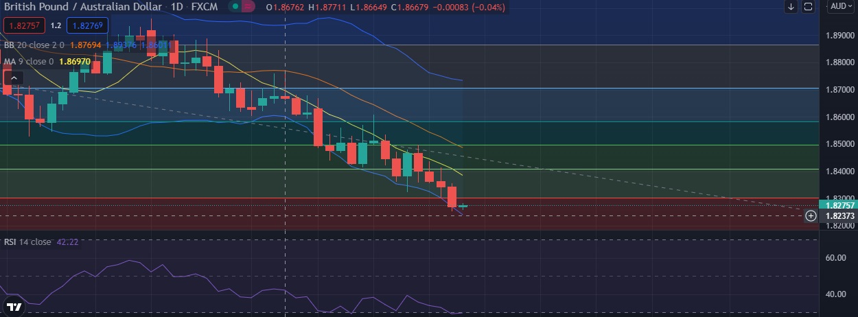 • GBP/AUD may find an interim floor at 1.8247(Lower BB ), The pair is likely to see more downside close below 1.8200 level is likely to open the possibility of run towards 1.8100.