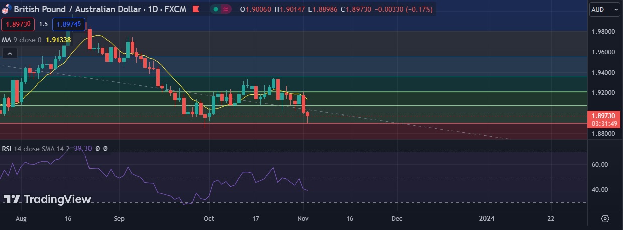 • GBP/AUD last traded at 1.8977, down 0.15% on the day, after briefly falling to 1.8900 earlier, its weakest 29th September.