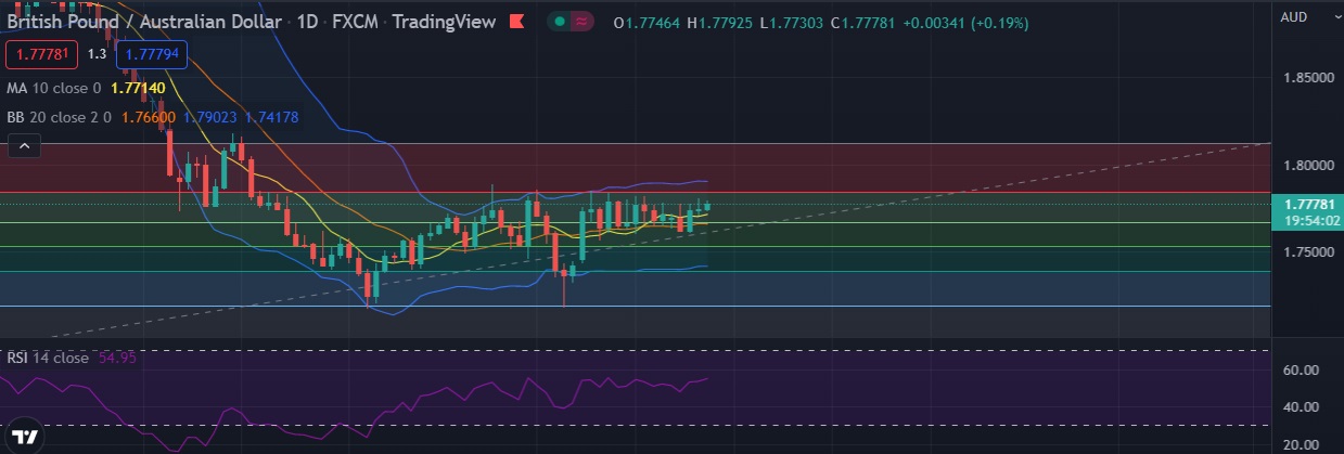 • Strong support is seen at 1.7714 (10DMA) and break below could take the pair towards 1.7666 (38.2%fib).