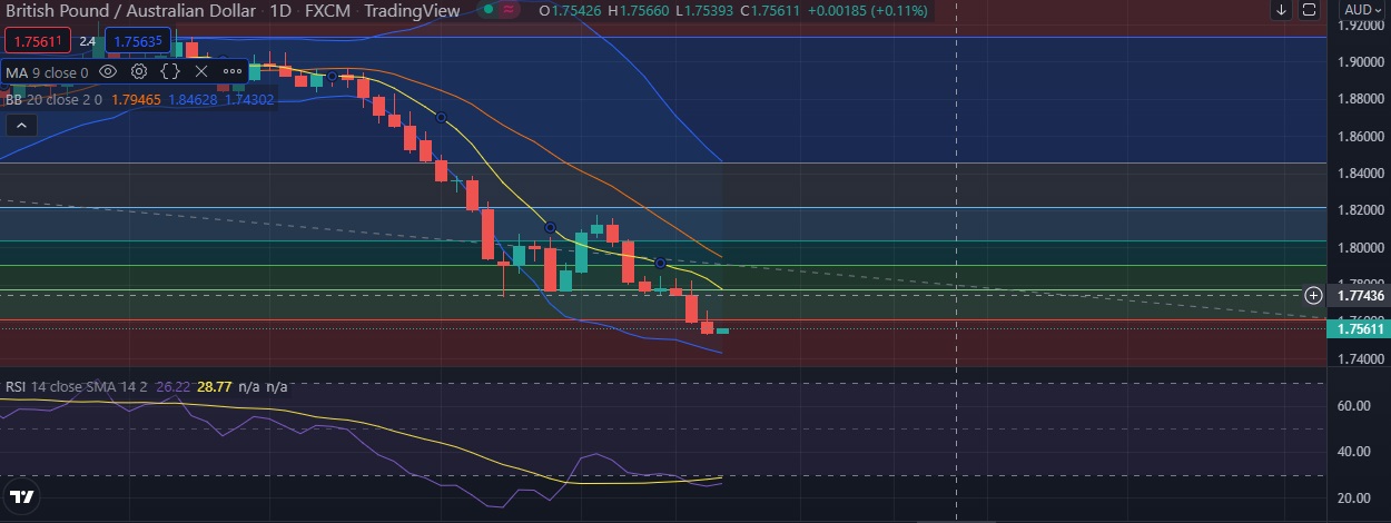 • Immediate support is seen at 1.7527(Daily low) and break below could take the pair towards 1.7431 (Lower BB).