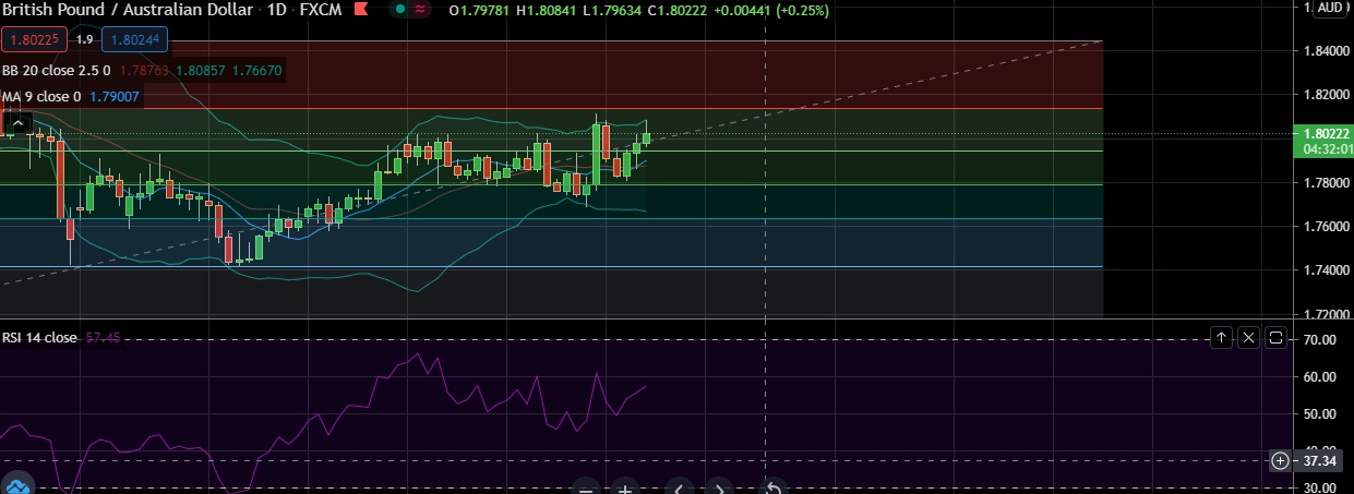 • Immediate resistance is located at 1.8082 (Higher BB ), any close above will push the pair towards 1.8136(23.6%fib).