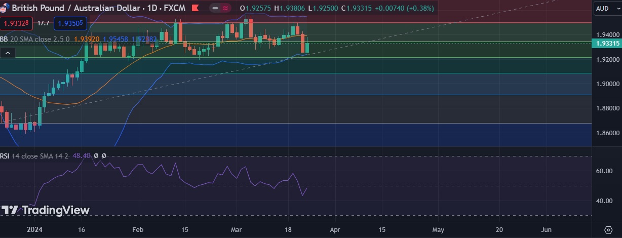 • Support is seen at 1.9244(Lower BB) and break below could take the pair towards 1.9212 (38.2%fib).
