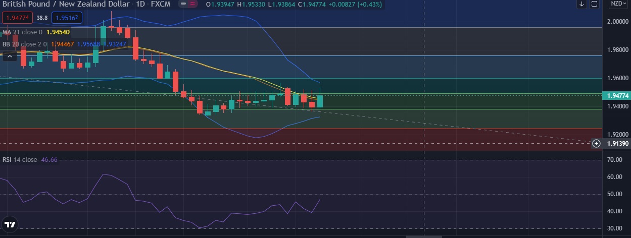 • Immediate support is seen at 1.9378 38.2%fib) and break below could take the pair towards 1.9328 (Lower BB).