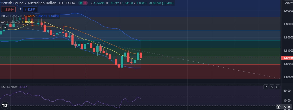 •Strong support is seen at 1.8272 (11DMA) and break below could take the pair towards 1.8202 (23.6% fib).