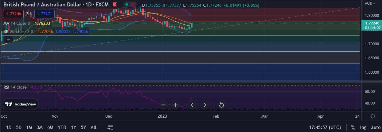 • The pair currently is approaching resistance at 23.6%fib. A break above will unmask 1.7800 level in the short term.