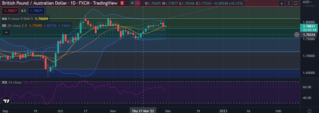 • Immediate resistance is located at 1.7907 (9DMA), any close above will push the pair towards 1.8023(Higher BB)