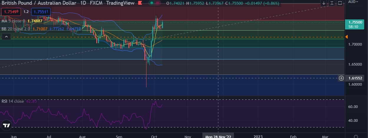 • Immediate support is seen at 1.7489 (5DMA) and break below could take the pair towards 1.7334 (38.2% fib).