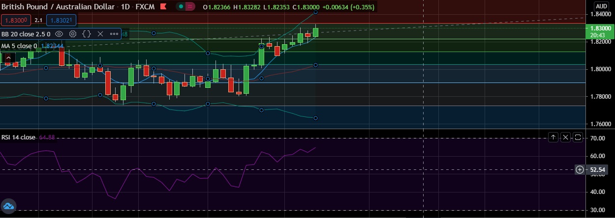 • The pair hit daily high at 1.8327 and was last trading at 1.8300 at (GMT 20:33).