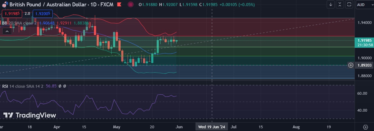 • Immediate resistance is located at 1.9242( 23.6%fib), any close above will push the pair towards 1.9294 (Higher BB).