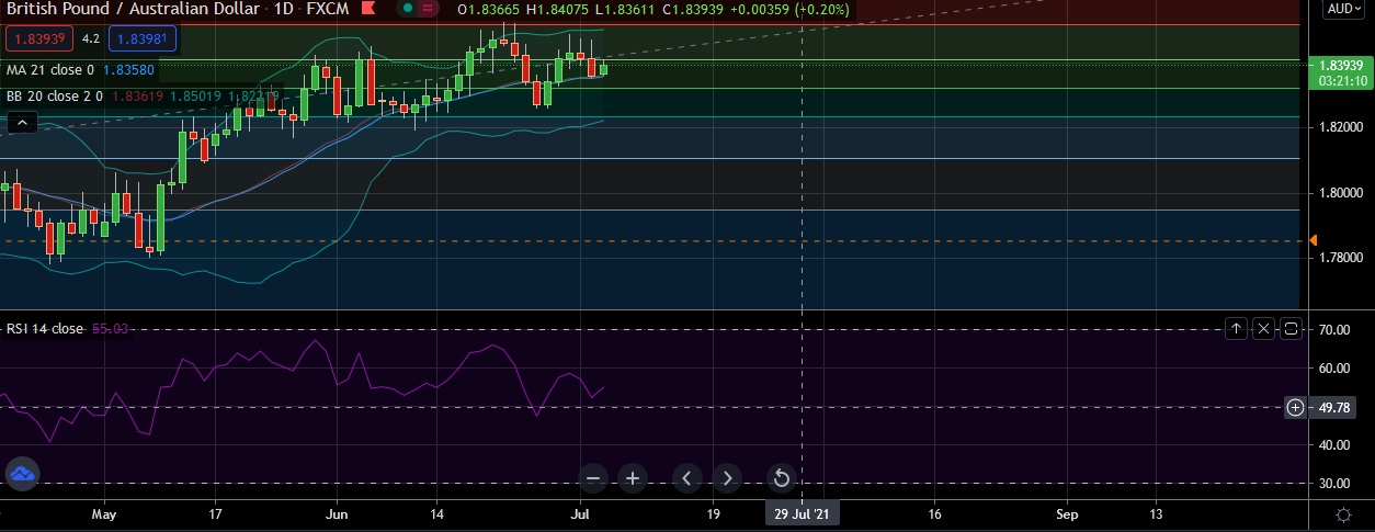 • Strong support is seen at 1.8355(21DMA ) and break below could take the pair towards 1.8318 (50%fib).