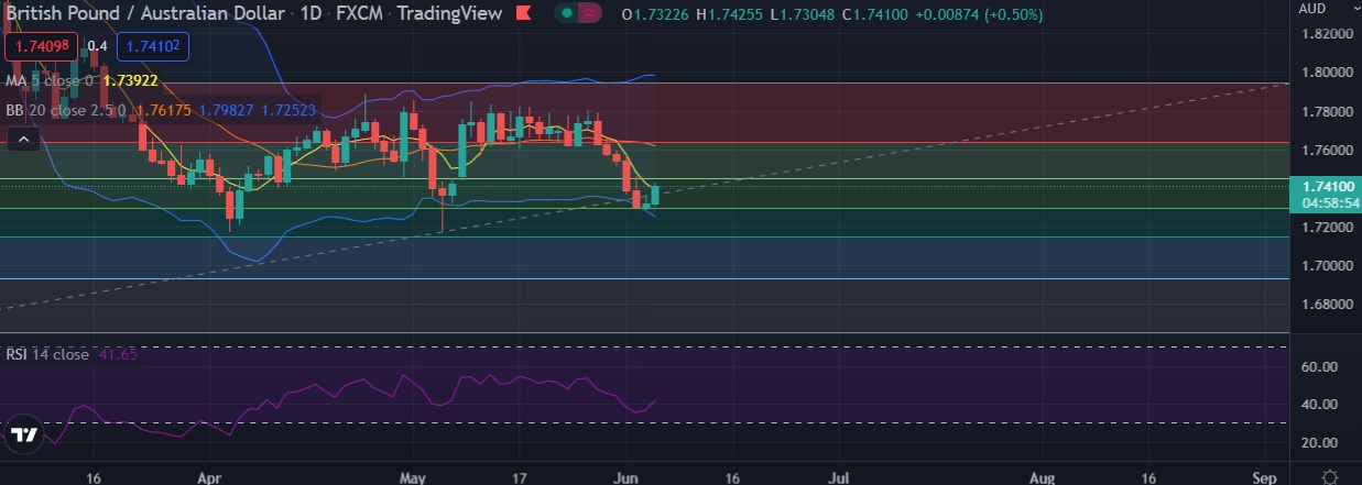 • Immediate resistance is located at 1.7411( 5DMA), any close above will push the pair towards 1.7448 (38.2%fib).