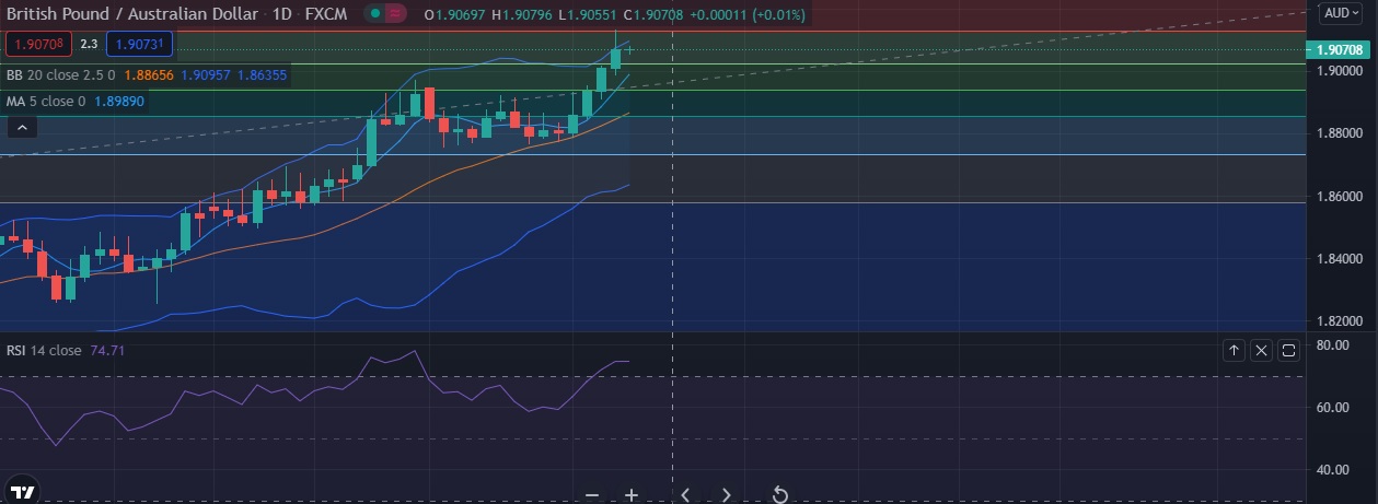 • At GMT 22:18, the pair was trading 0.65% higher at 1.9078, highest since 20th May 2020.