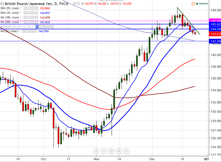 - GBP/JPY broken major support at 144.25 21- day MA and closed slightly well below that level on Friday. Any close below 21- day MA will drag the pair down till 142.50 (200- day MA).Any close below 200- day MA will drag the pair down till 140.