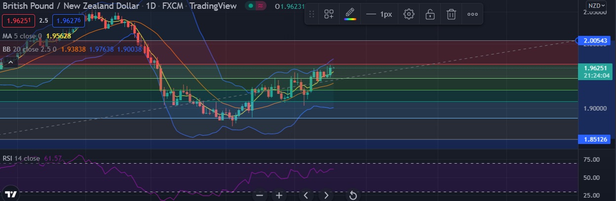 • Immediate resistance is located at 1.9683 (23.6%fib), any close above will push the pair towards 1.9750(Higher BB).