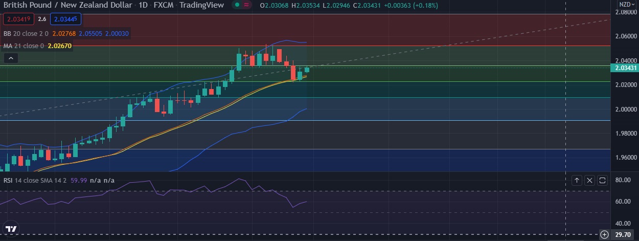 • Support is seen at 2.0270(21DMA) and break below could take the pair towards 2.0232(38.2%fib) .