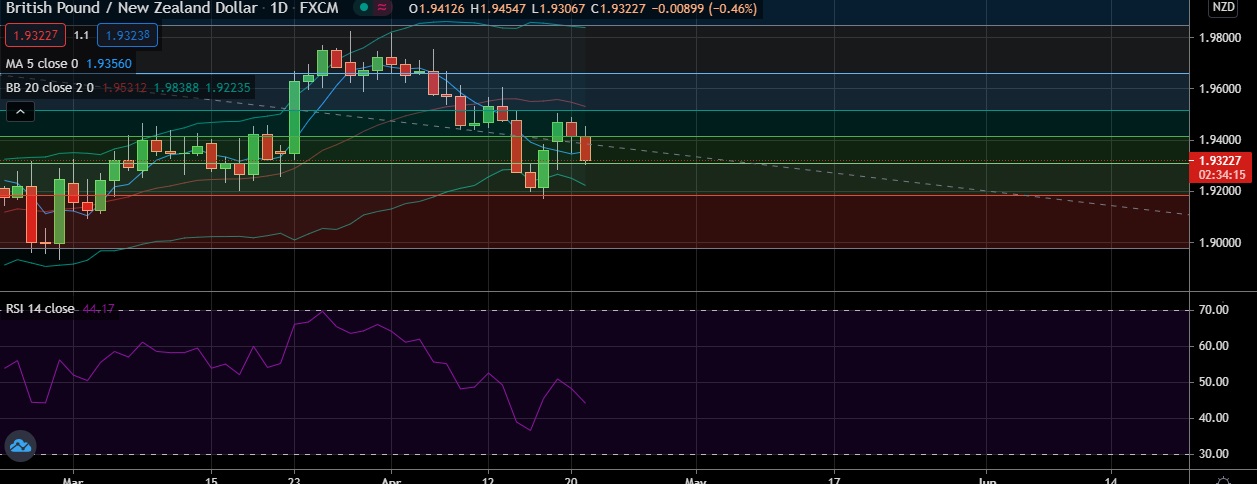 • Support is found at 1.9305 ( 38.2%fib) and at 1.9227 (Lower BB).