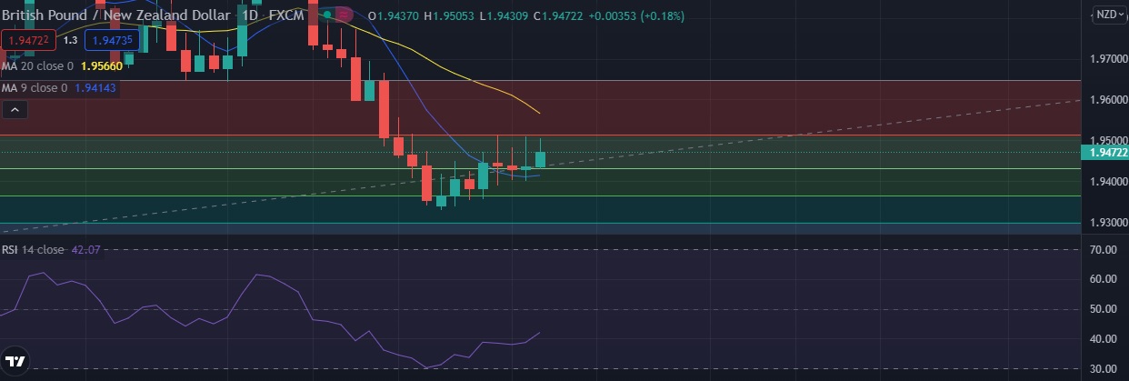 • Strong support is seen at 1.9429 (38.2%fib) and break below could take the pair towards 1.9411(9DMA).