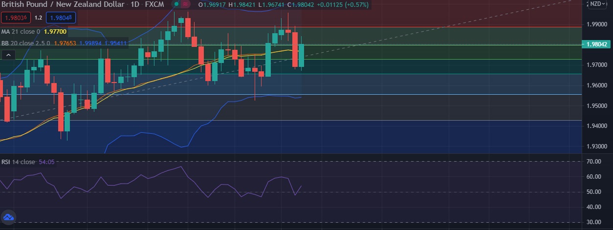 • Support is seen at 1.9800(38.2%fib) and break below could take the pair towards 1.9731 (50%fib).