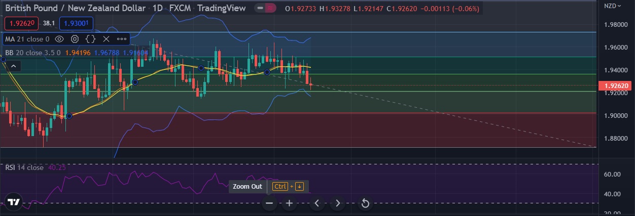 • Immediate support is seen at 1.9214 (38.2%fib%fib) and break below could take the pair towards 1.9170 (Lower BB).