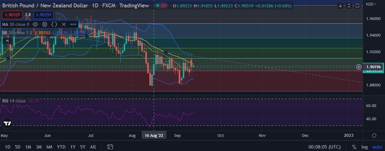 • Immediate support is seen at 1.8970 (23.6% fib) and break below could take the pair towards 1.8861 (Lower BB).