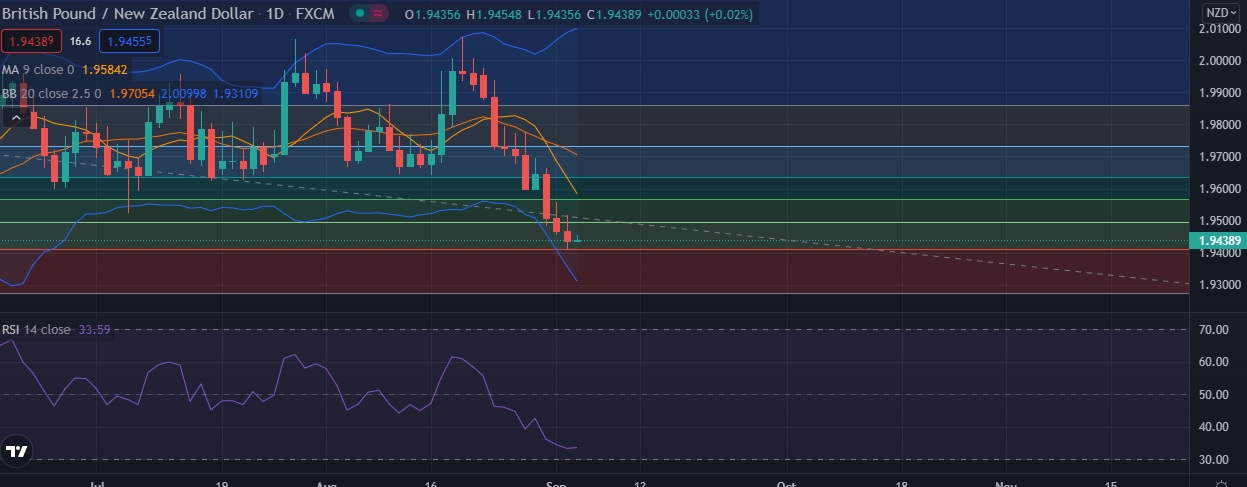 • Immediate support is seen at 1.9411 (23.6%fib) and break below could take the pair towards 1.9345 (Lower BB).