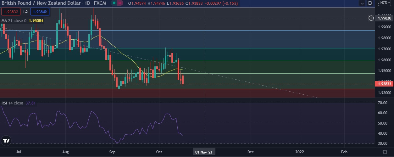 • Technical signals show the pair could lose more ground as RSI is at 38 bearish, and 9, 11,21 DMA’s are trending south.