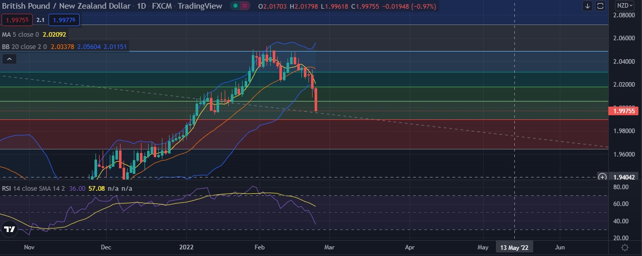 • GBP/NZD declined sharply on Wednesday as kiwi dollar was lifted by hawkish tilt by Reserve Bank of New Zealand.