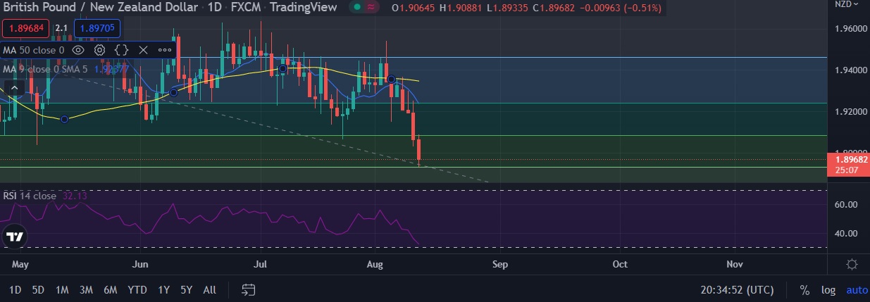 • At GMT 20:29, the pair was trading down 0.51 percent at 1.8968 after reaching daily low at 1.8930.