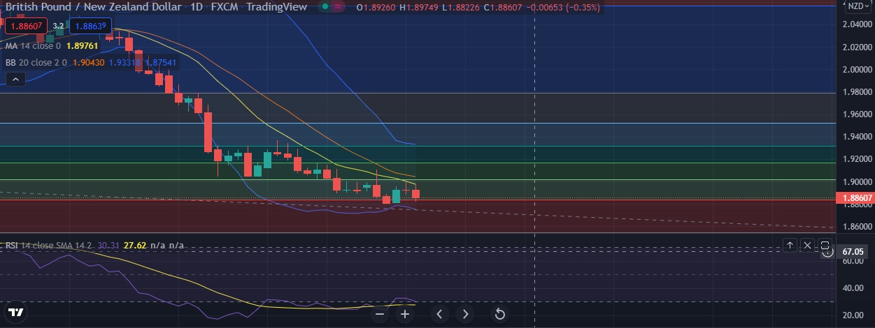 • Immediate support is seen at 1.8839 (23.6% fib) and break below could take the pair towards 1.8758 (Lower BB ).