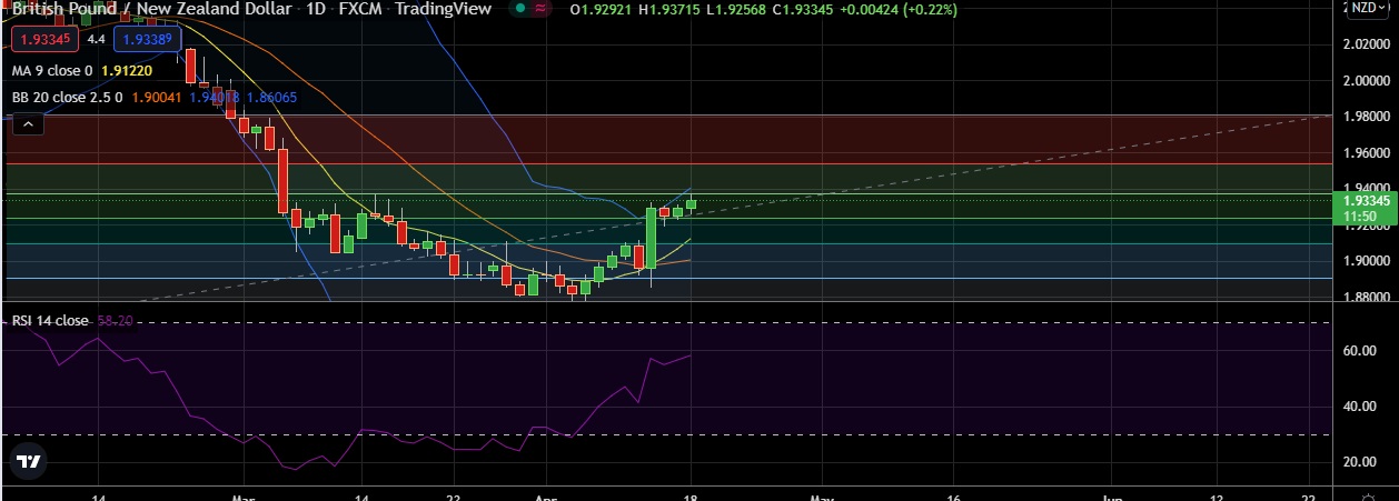 • Immediate resistance is located at 1.9373(38.2%fib), any close above will push the pair towards 1.9409 (Higher BB).